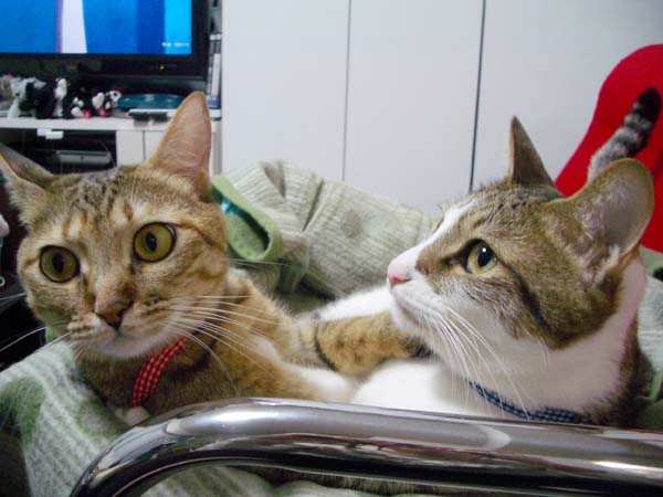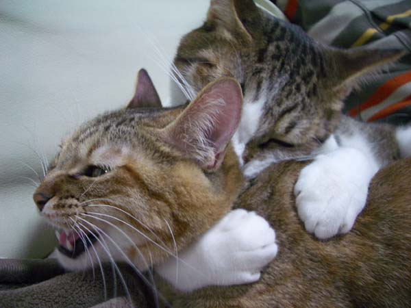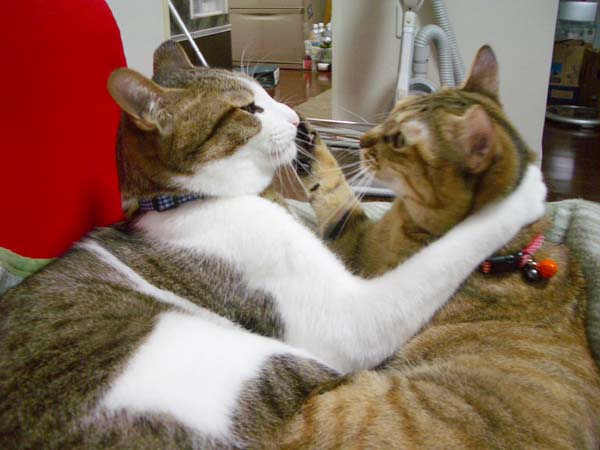毛づくろいの最中にいきなりプロレスが始まったり。