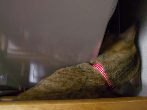 ついでに冷蔵庫のコードにじゃれてみたりと、