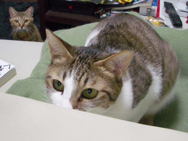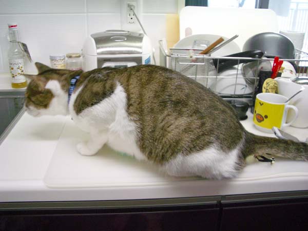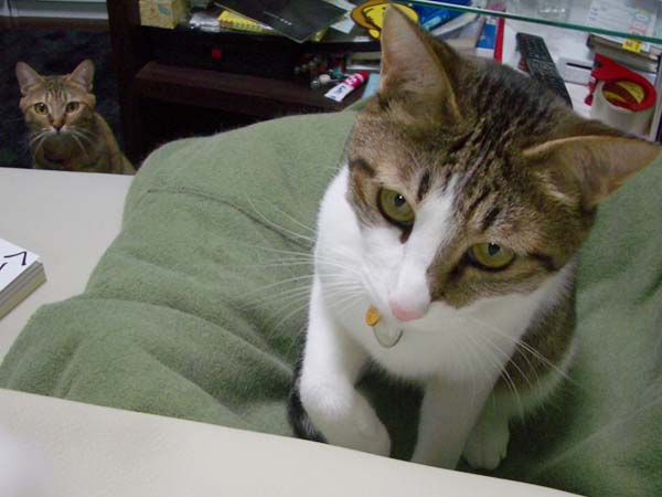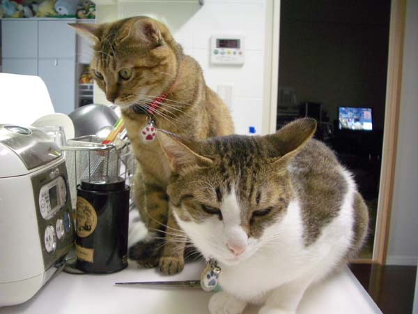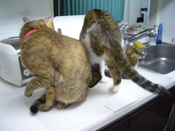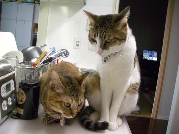 の食事中、和室へ強制退去されていた2匹。さっきまでカウンターにあった人間用の食事