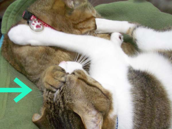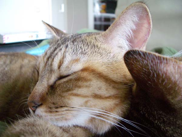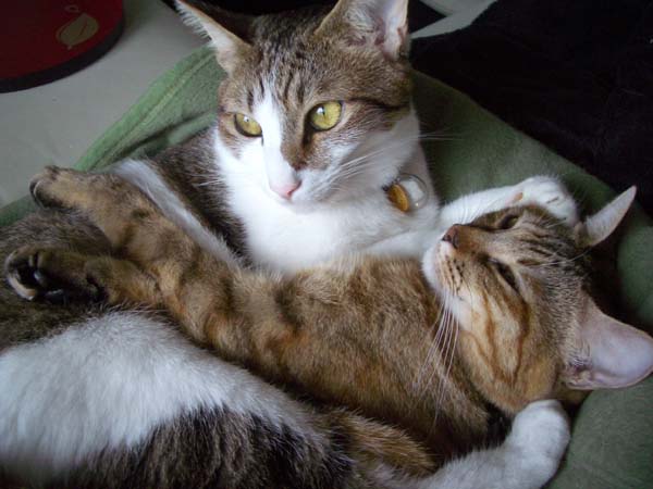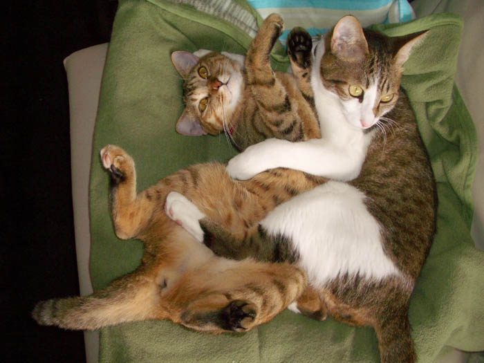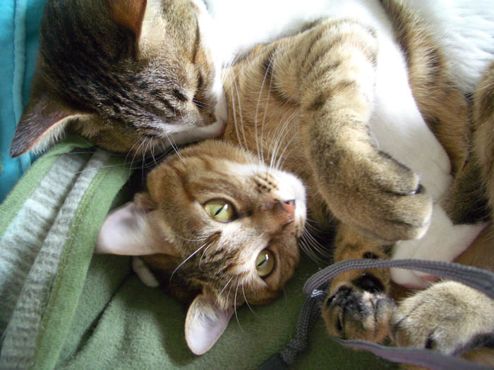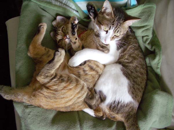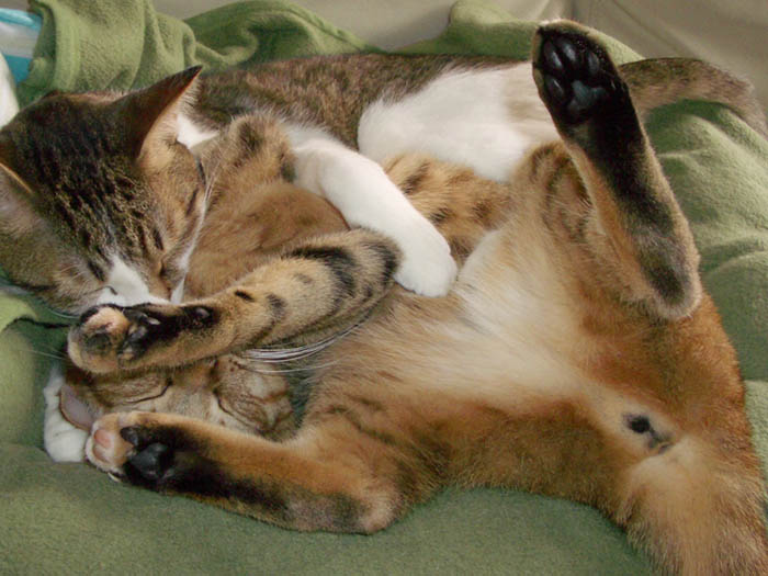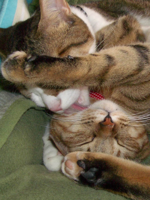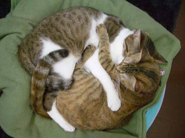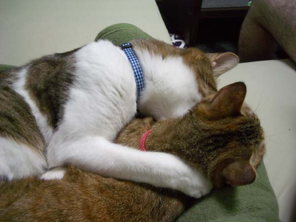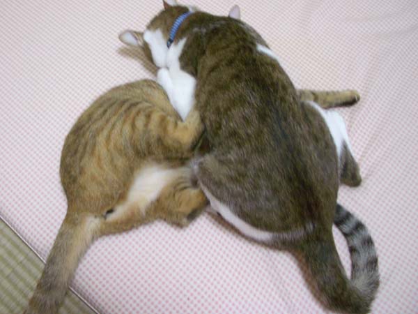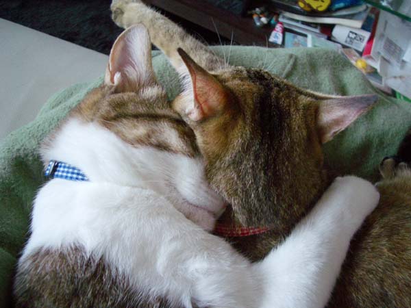 2匹で仲良く抱き合いながらのお昼寝。