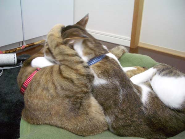 その後、2匹で寄り添ってお昼寝の体勢へ。