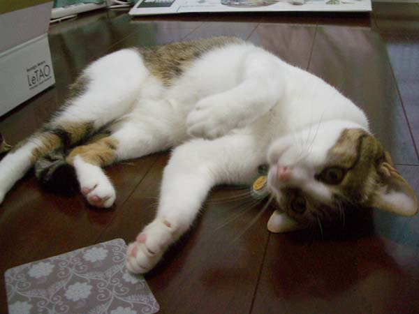 左耳が床との間でペタンとしています。。
