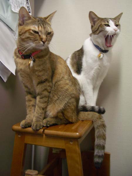 」食後の朝ごはんコールをする2匹。