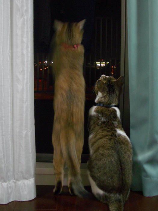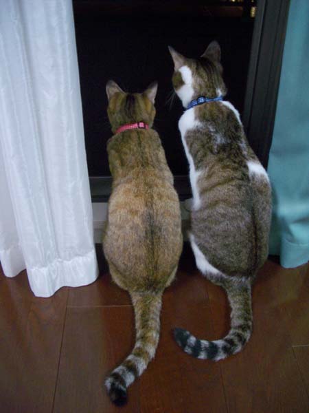 網戸越しに、外を眺める2匹。