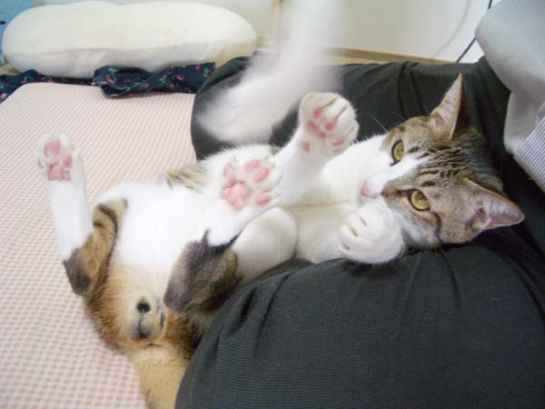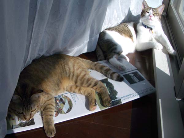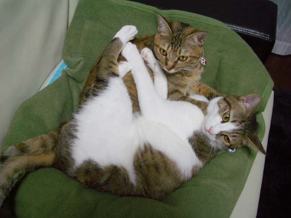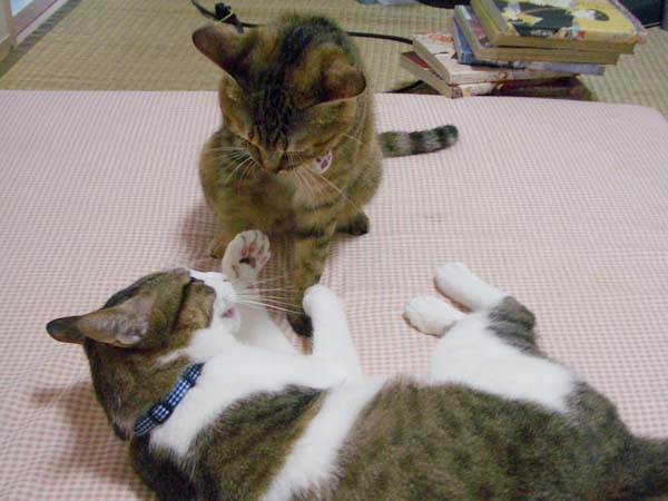室内飼いのせいか、毎日の日光浴のせいか、はたまた2匹でお互い舐めあっているせいか。