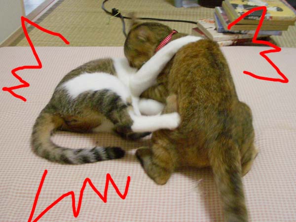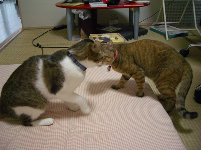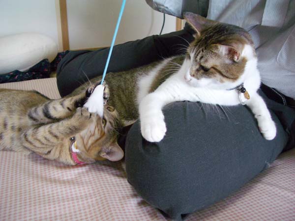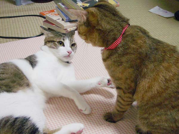 ぽっけ♂がじゃれている横で隙を窺っています。
