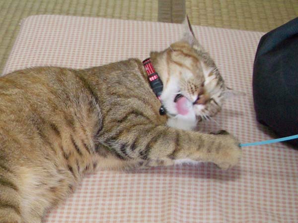 で迎撃体勢のぽっけ♂。最近、ぽっけ♂が猫じゃらしで遊ぶ時は、