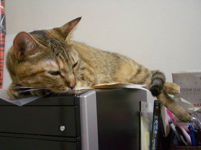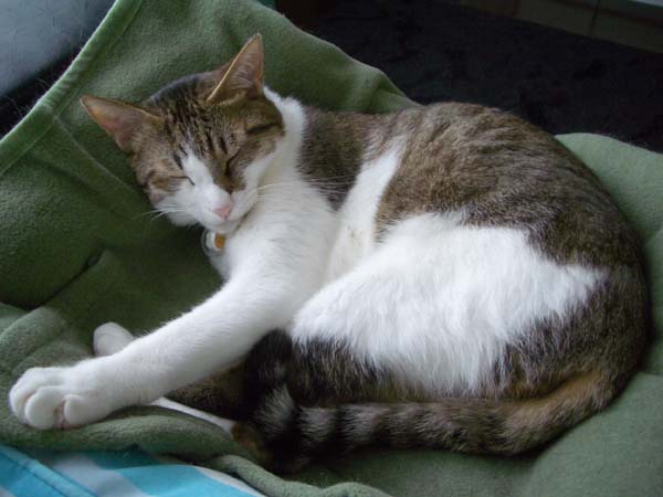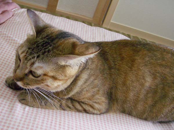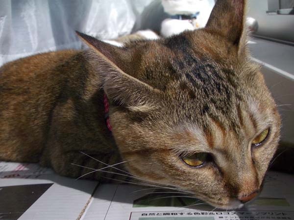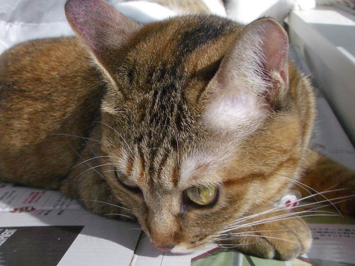 全身日光浴で気持ち良さそうなぽっけ♂。