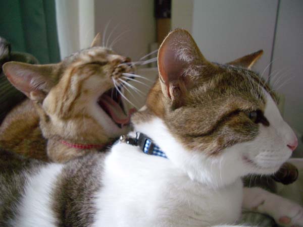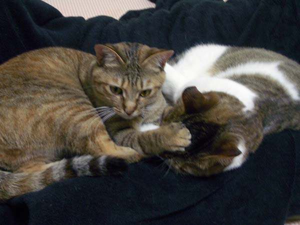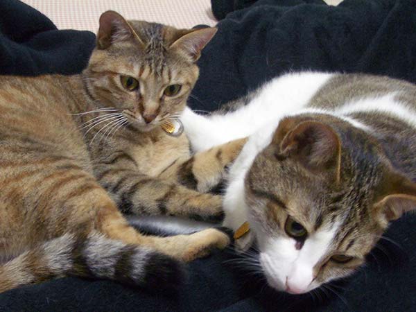 いきなりぽっけ♂の頭をポフっと猫パンチ