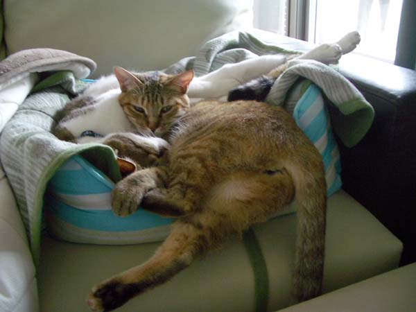 を開いたお得意の座りポーズで早速毛づくろいを開始しました。