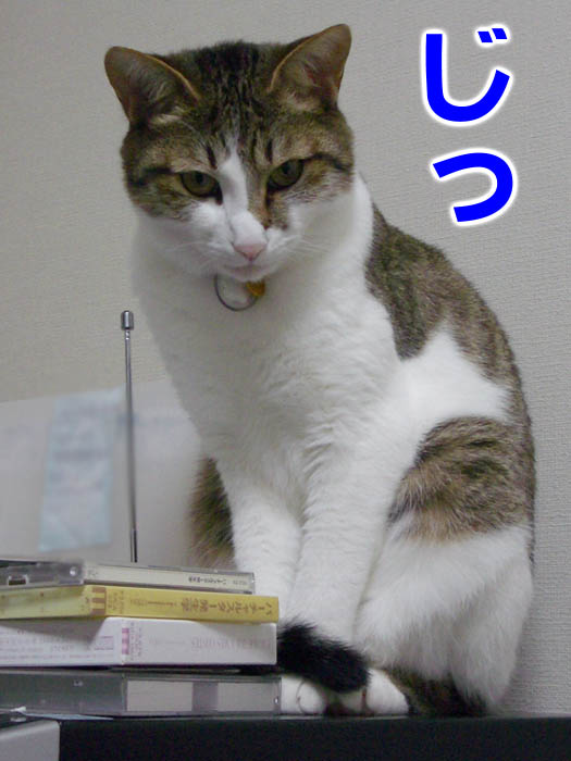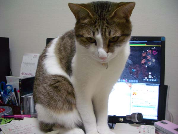 の膝の上から、パソコン本体の上へと移動したぽっけ♂。じっ……、と視線を感じます。