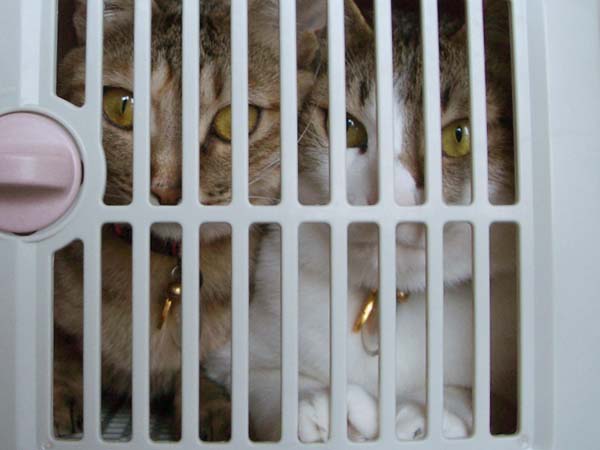 」キャリーの中から、外の様子を見つめているぴっち♀。