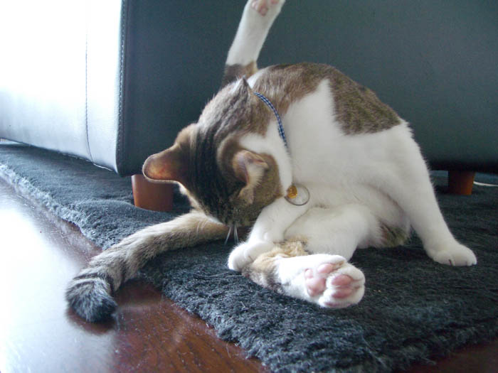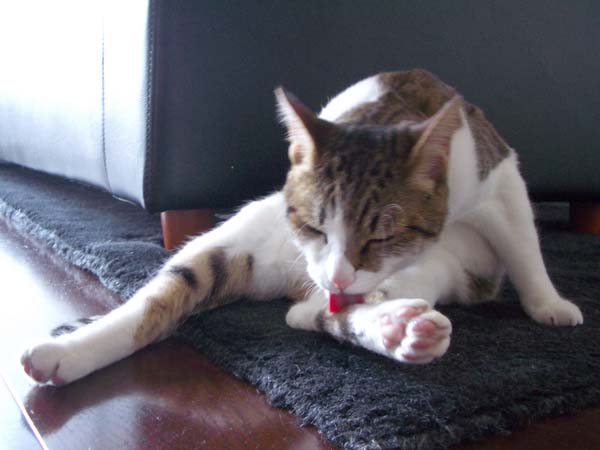 でしっかりホールドしながら、ぴっち♀がぽっ毛並み(誤字にあらず)を一生懸命舐めてます。
