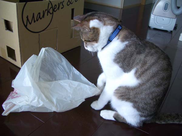 ビニール袋を前に、突入の3秒前。