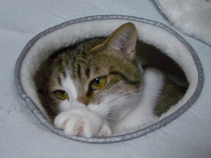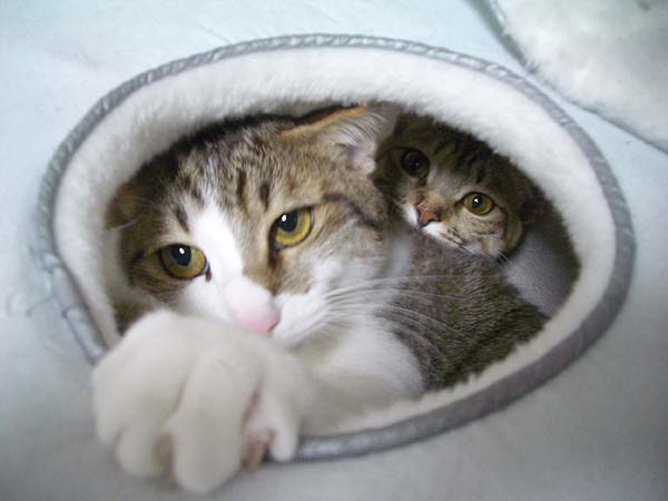 猫ベッドの上にかけている毛布の隙間から