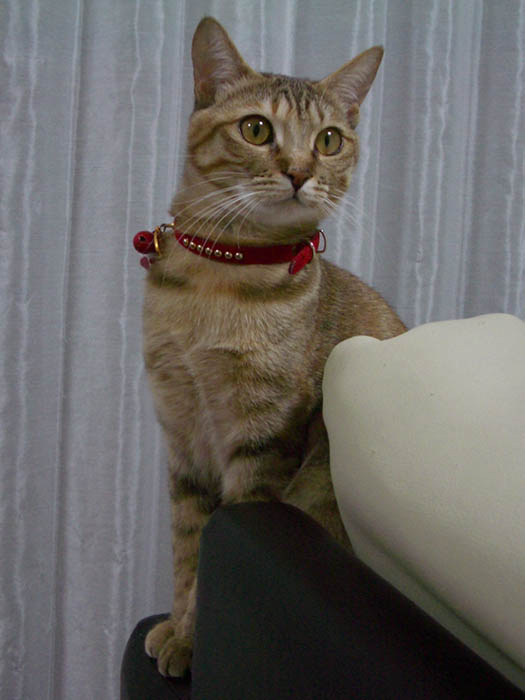 ソファーの手すりに佇むぴっち♀。