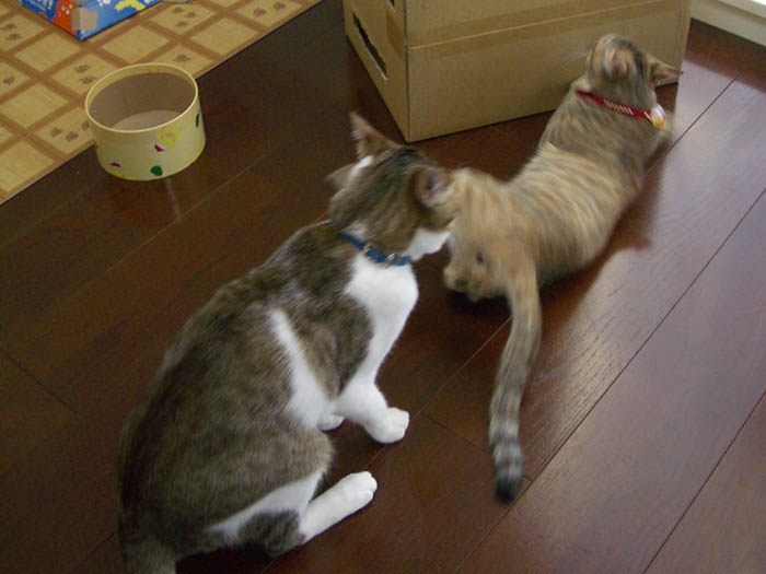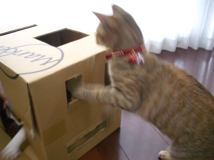 箱の外側からちょっかいを出しています。