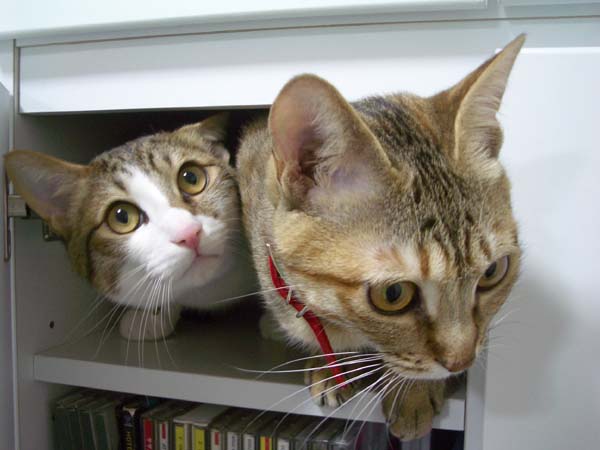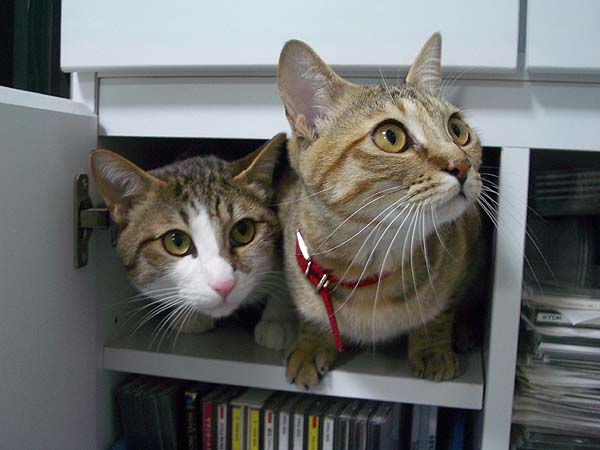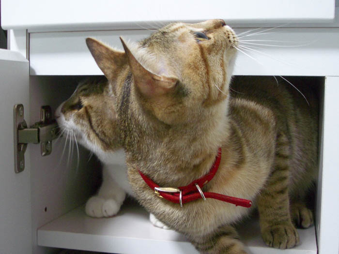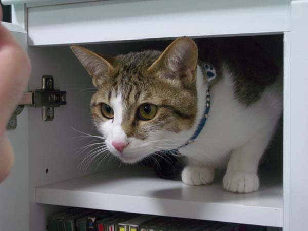 早く出てくれないと、戸棚の扉をしめちゃうぞ~(笑)。
