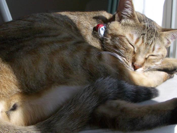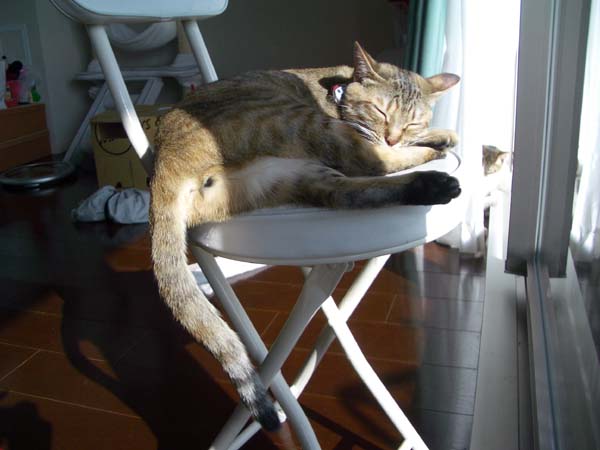 の午後は、窓際でお昼寝。ぴっち♀のお尻が丸見えです。