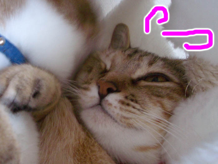 セクシーポーズで丸くなって寝ているぴっち♀。