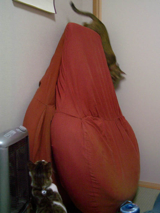 あまり顔を近づけると、麻紐がチクチクしないのかな、と