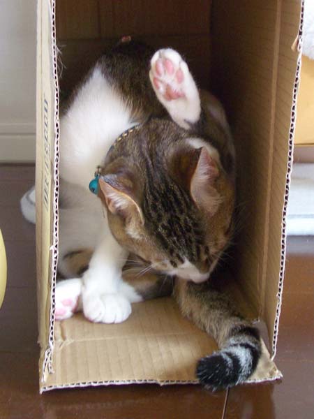 暖ボール箱を見つけ、その中へと入ったぴっち♀。