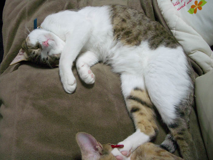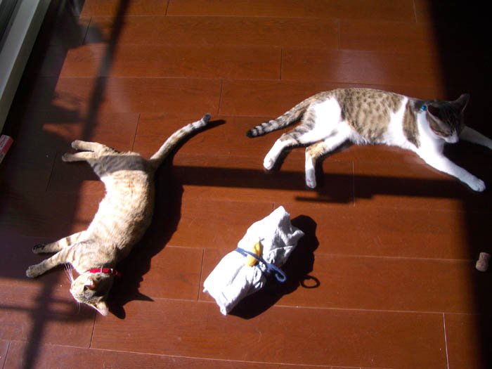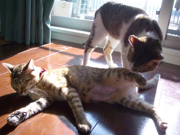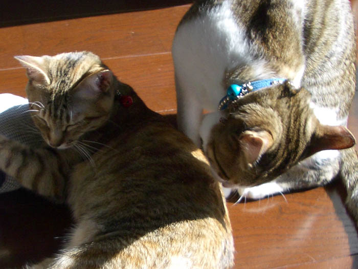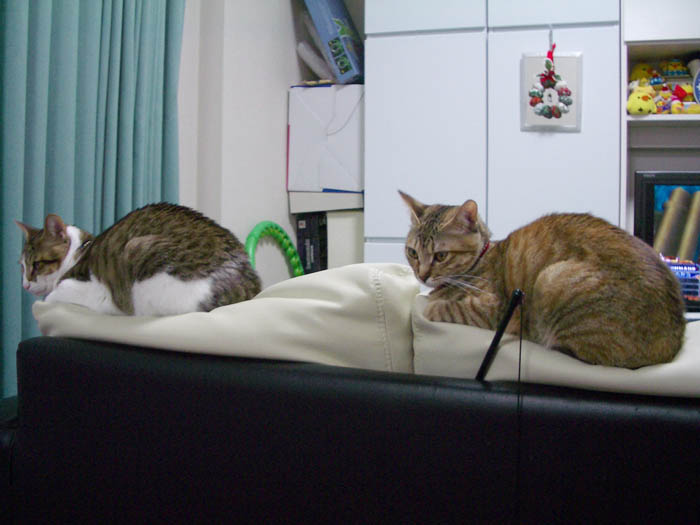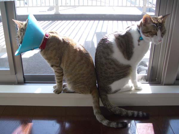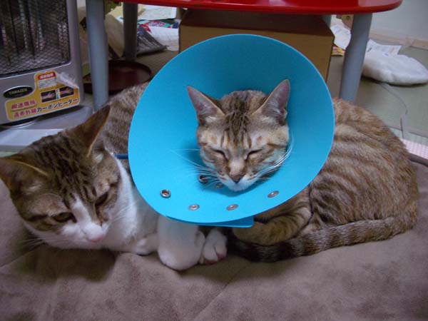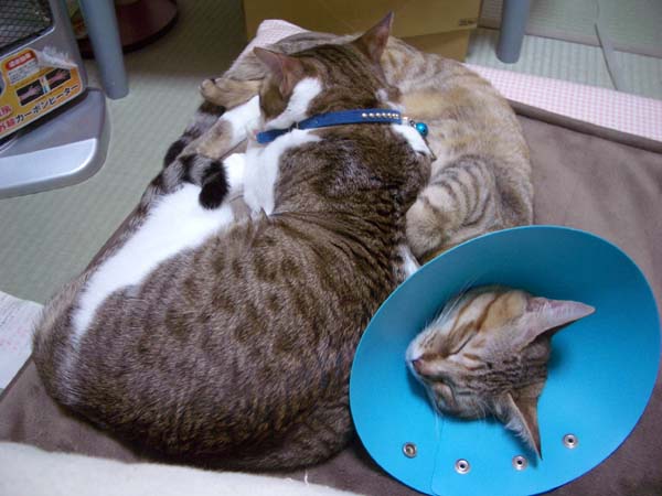 病院から家に戻り、ようやく安心した2匹。