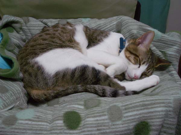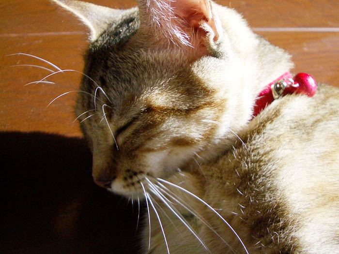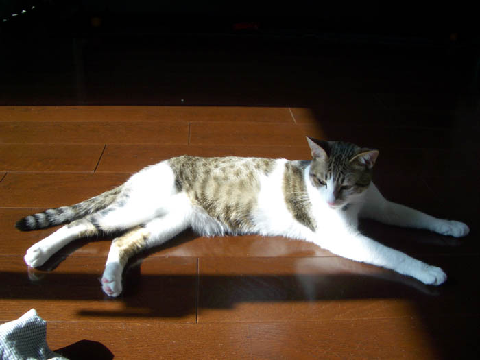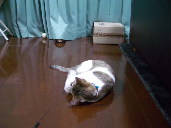 )の毛づくろい返しでしょうか……。寝そべって再びお昼寝の体勢へ。