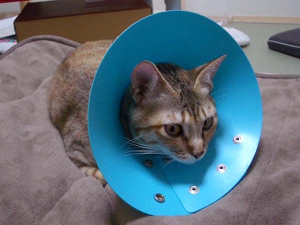 ぽっけ♂の首輪を齧り始めました。