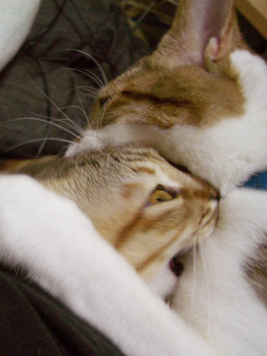 お互いの前足が絡み合って、