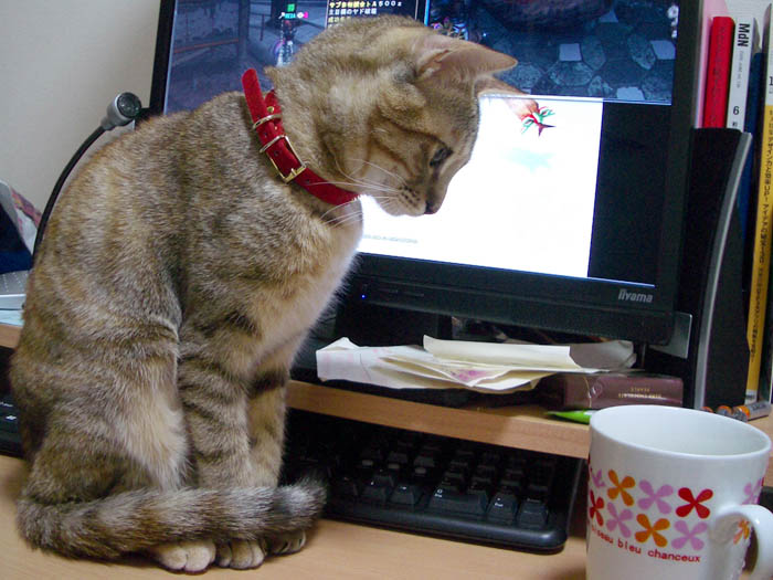 昨日に続いて、マグカップを見つめるぴっち♀。