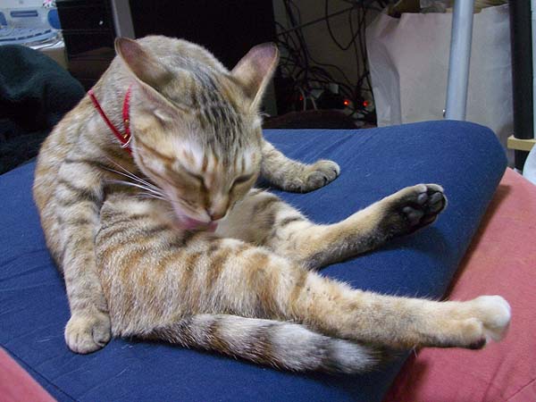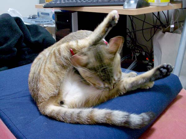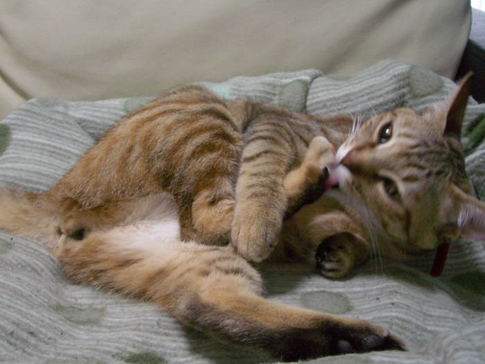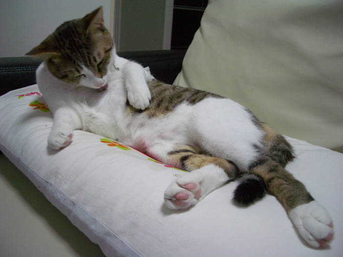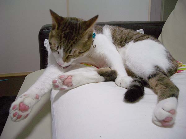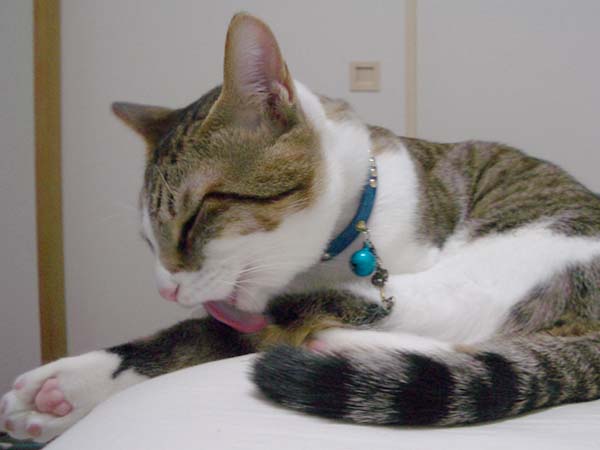 優雅に毛並みのお手入れ中です。