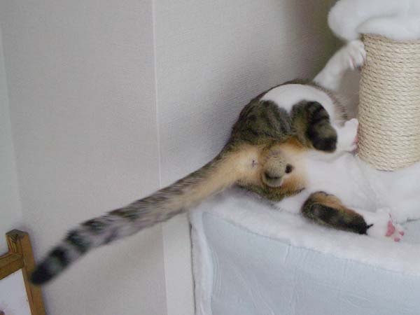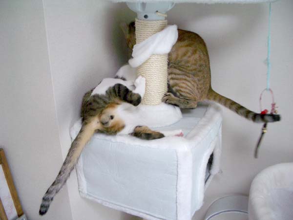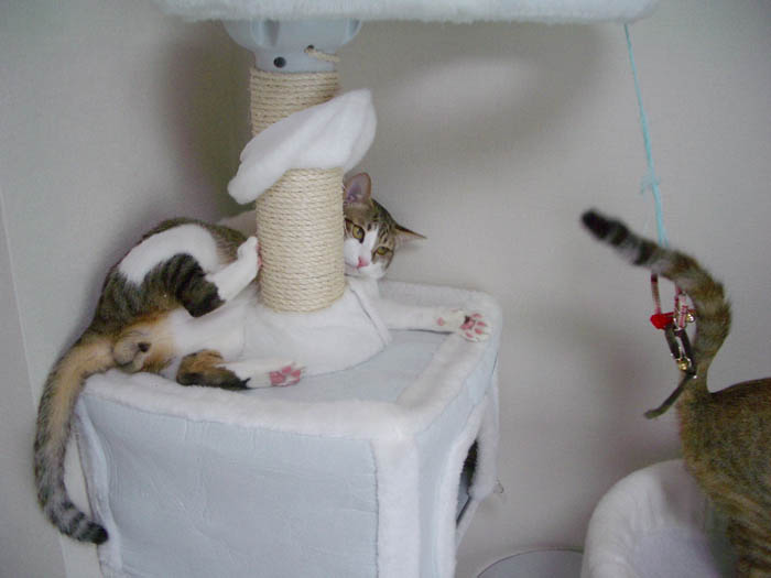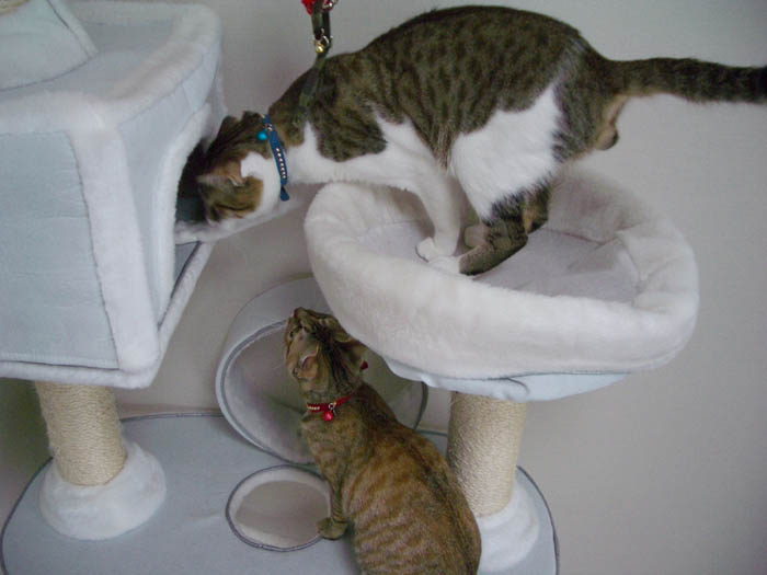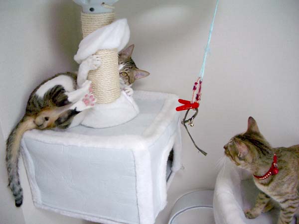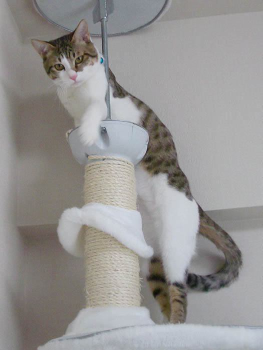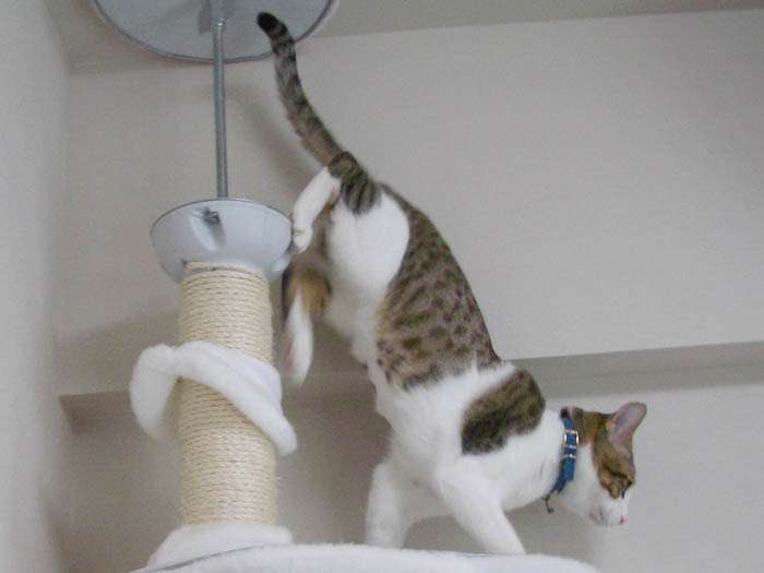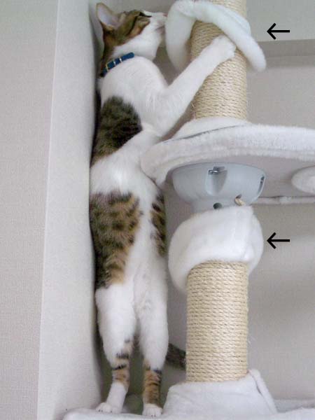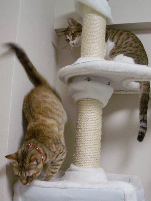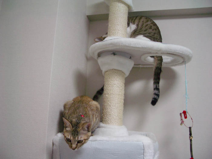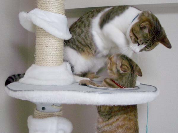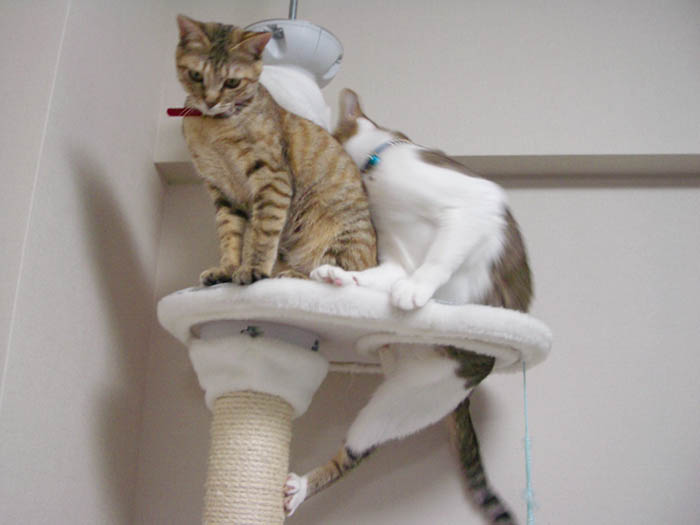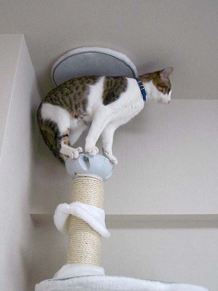 猫タワーの最上段にいたぴっち♀の所へ