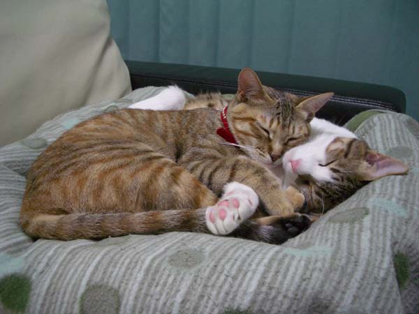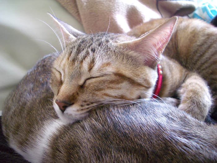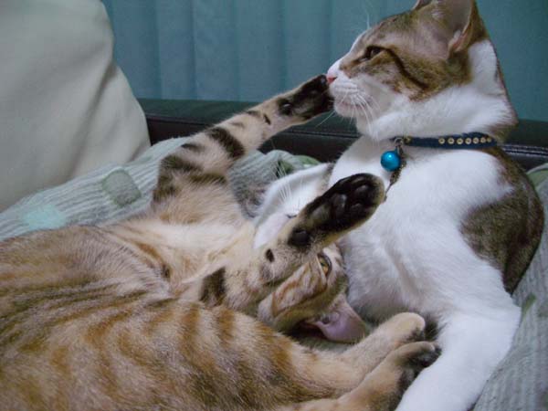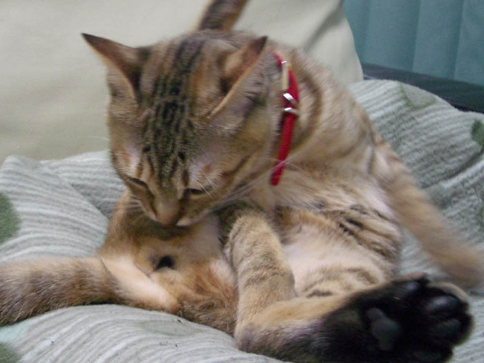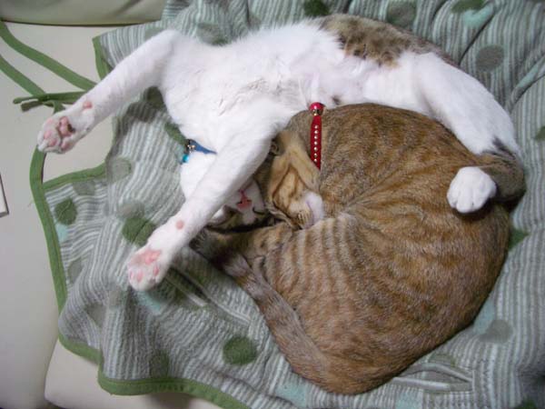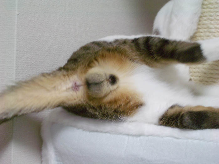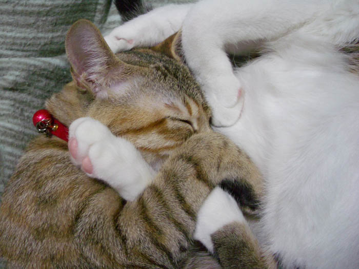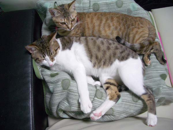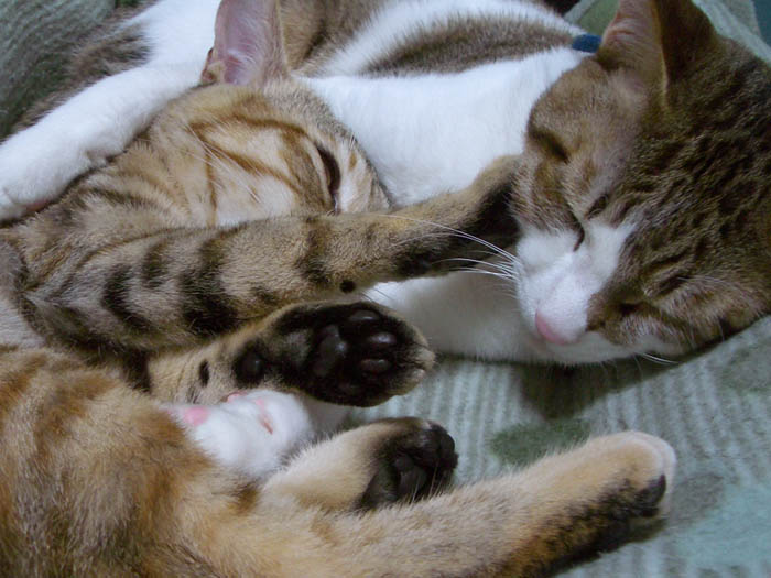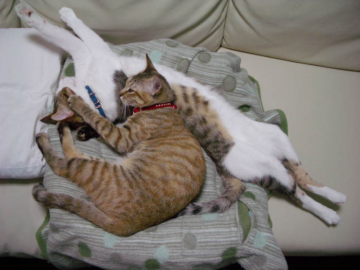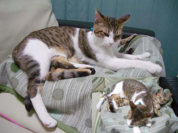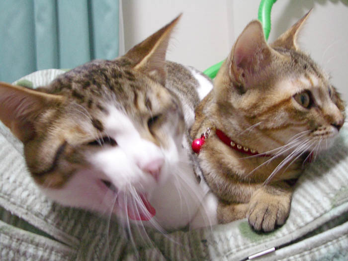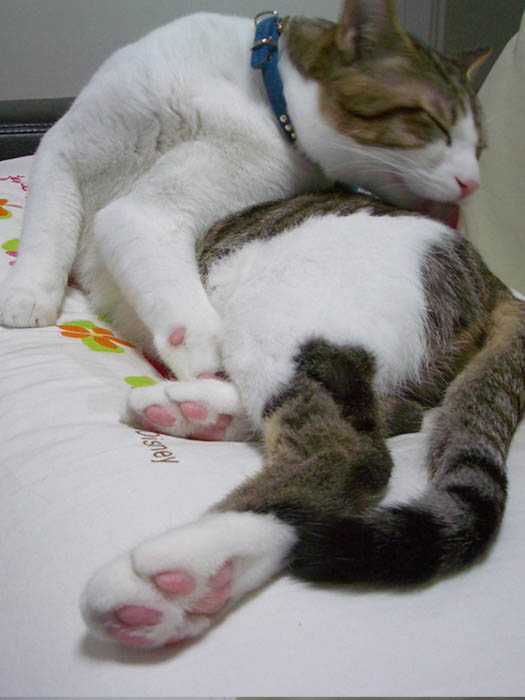 ぽっけ♂のお腹に割り込み参加しました。