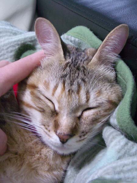 猫ベッドにかけてある毛布をめくり、