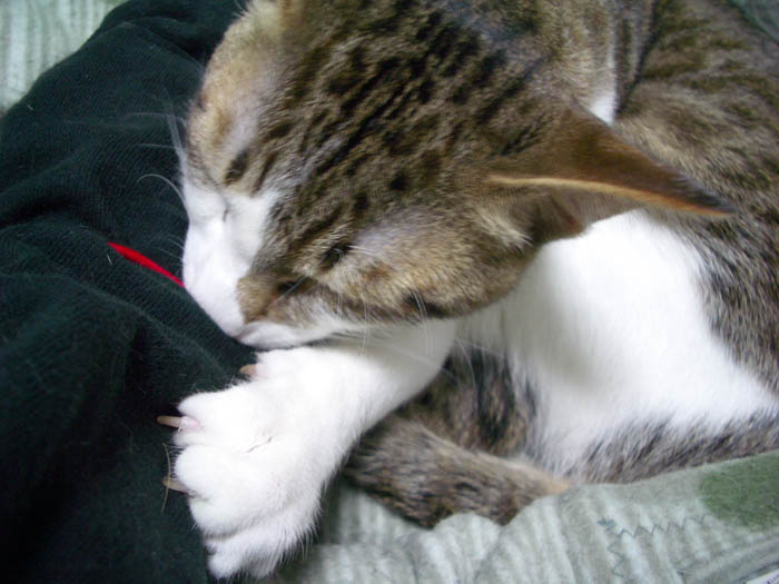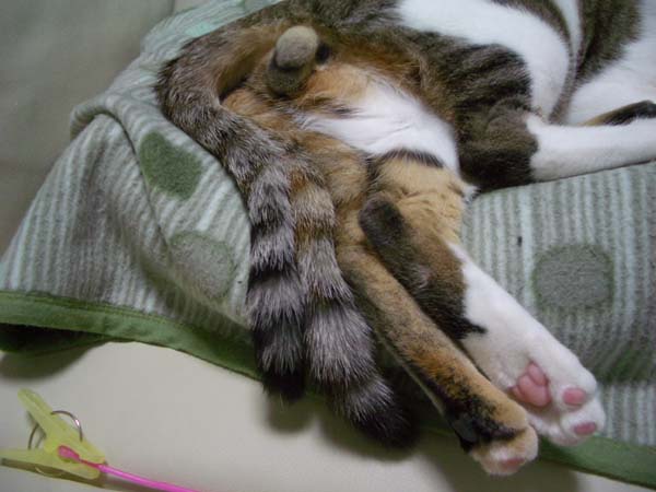 伸ばしたぽっけ♂の足