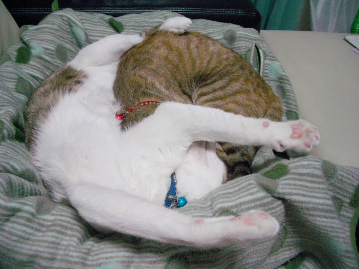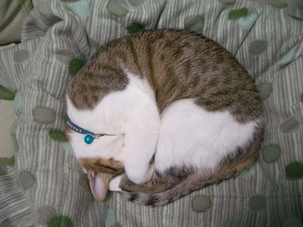 まん丸になって眠るぽっけ♂。
