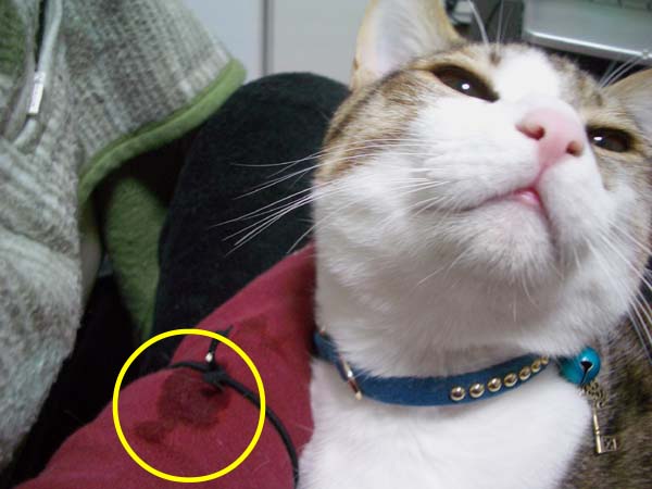 ちなみにぽっけ♂の唾液も服に浸透し、