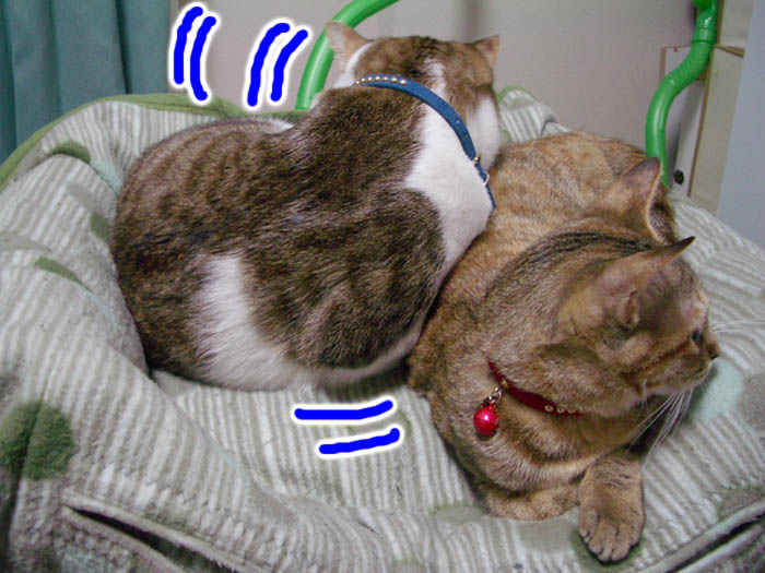 ぽっけ♂が場所をとっている分、