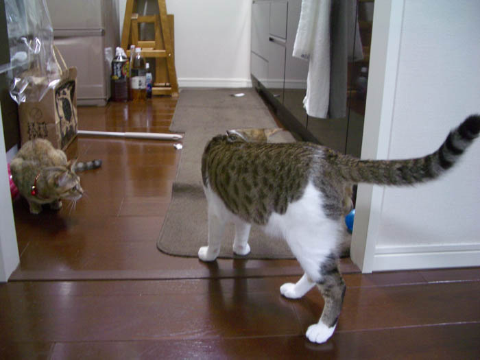 猫が廊下へと脱走していきます