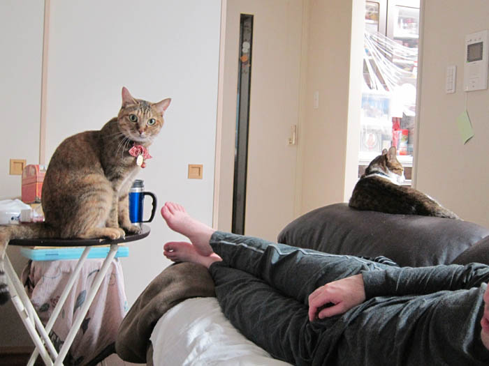 気持ちよくお昼寝していたのに……不満気な2匹の表情がナイスです。