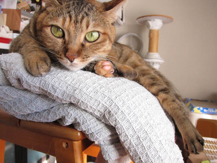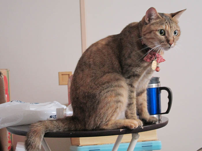 畳んだ洗濯物をちょっと踏み台に置いていたら、