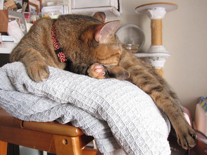 寝床にこだわるぽっけ♂はより良いお昼寝の為、事前準備に余念がありません。