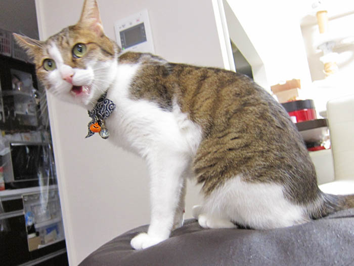 そんなぽっけ♂がいるソファーの背もたれの上で