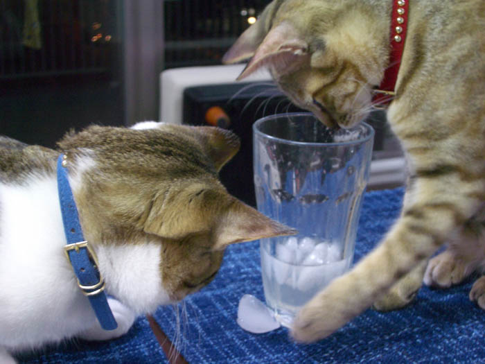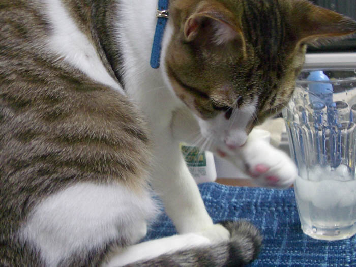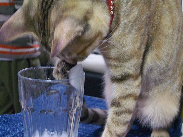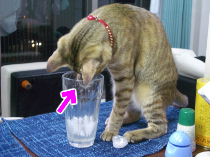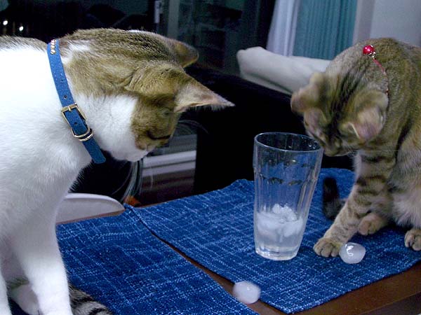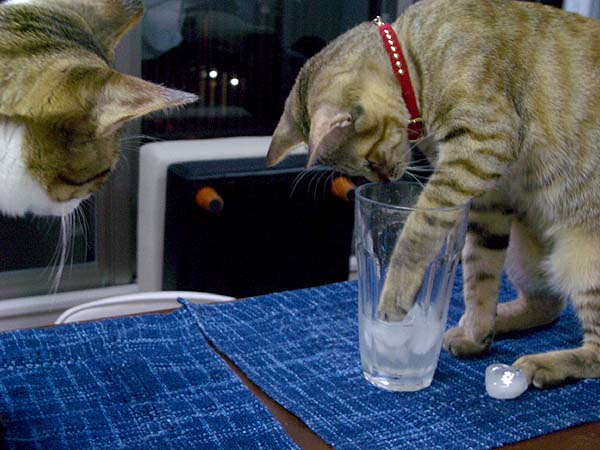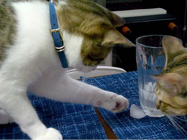 氷に猫パンチ