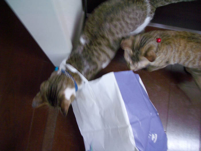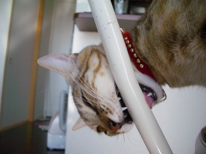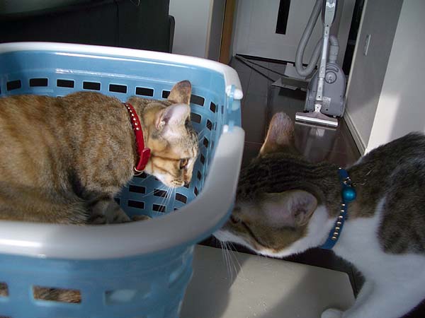 2匹が和室に入ると、探検したり、物をなぎ倒したり。