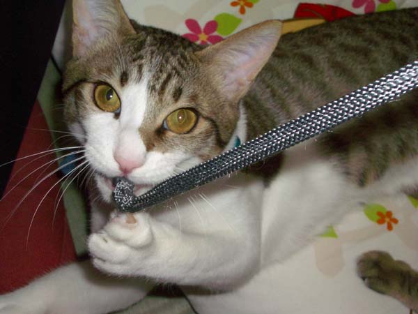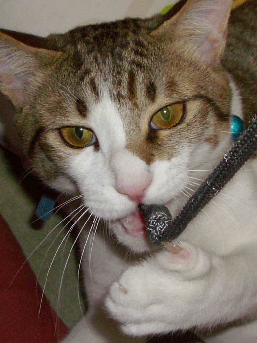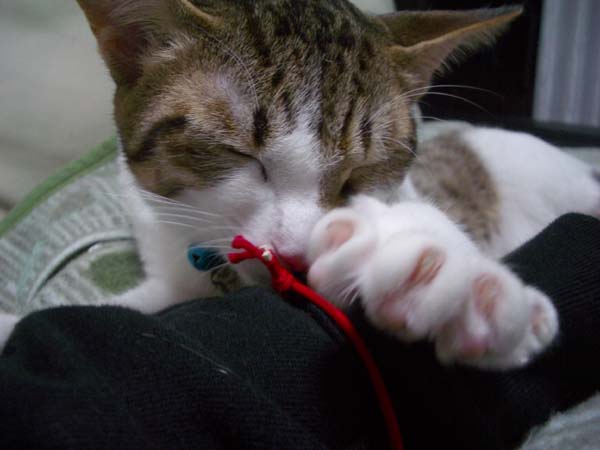 今度はデジカメストラップが気になるぽっけ♂。