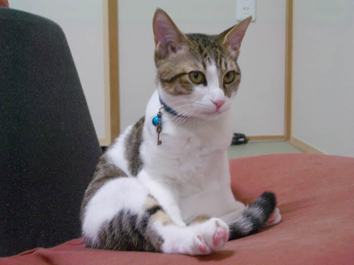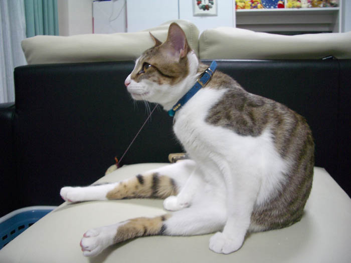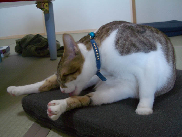 ぽっけ♂はソファーで毛づくろい中です。