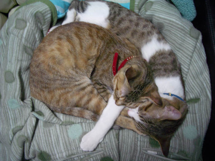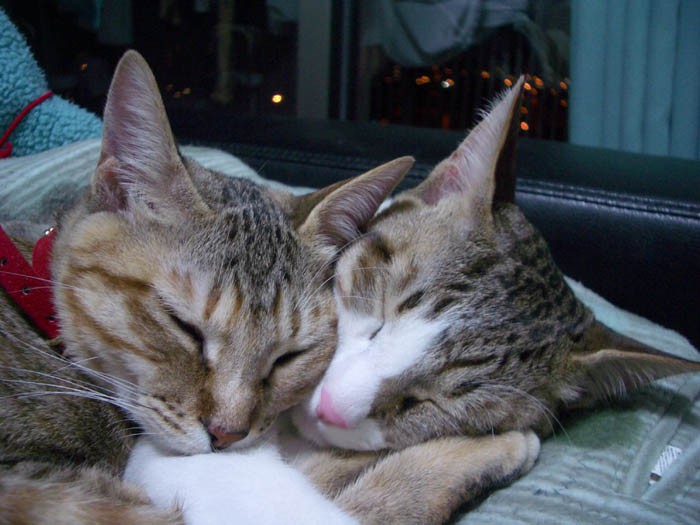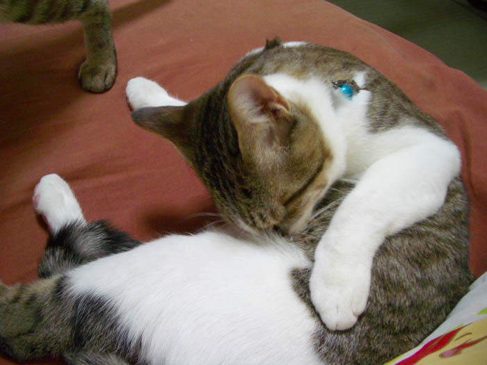ちゃっかりぽっけ♂の前足を枕にしていました。