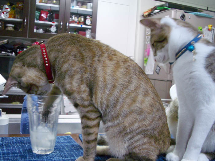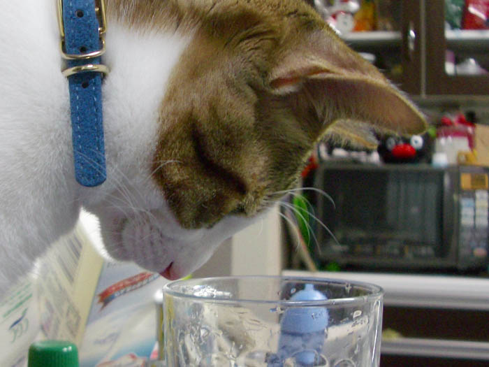 グラスを覗き込むぽっけ♂。